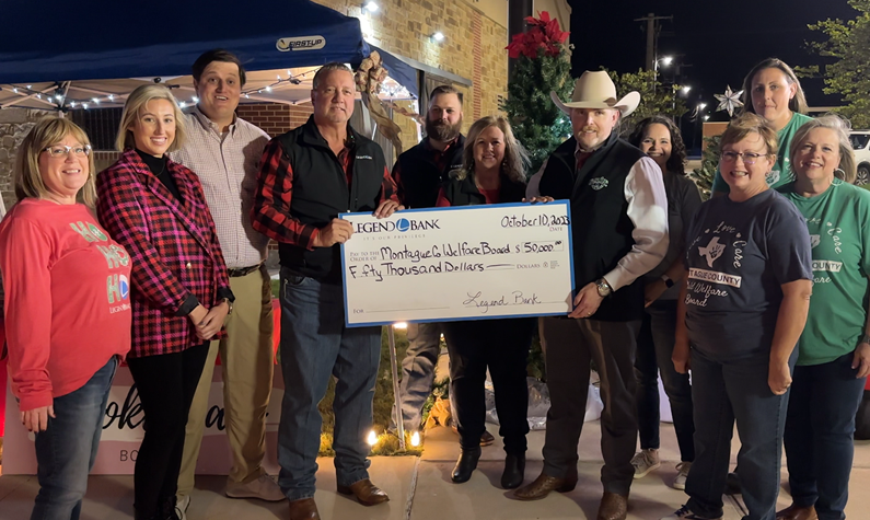 In 2023, Legend Bank proudly awarded a $50,000 Legendary Legacy Fund donation to the Montague County Child Welfare Board (MCCWB) toward the building of a much-needed new Child Advocacy Center. This center will help meet the health, welfare, education, and social needs of abused and neglected children in Montague County. We’re honored to support the MCCWB and raise awareness for the incredible work they do on behalf of children, foster families, and Child Protective Services in our community.