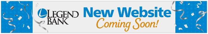 We can’t wait to welcome you to the new, improved Legend Bank website. Stay tuned for the big reveal!