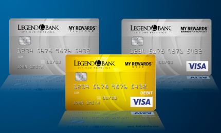 Get rewarded for everyday spending with Legend Bank Rewards, our free debit card program that gives you points every time you use your card. Use your Legend Bank Debit Card for everyday purchases and earn points you can redeem for gifts, merchandise, and gift cards.